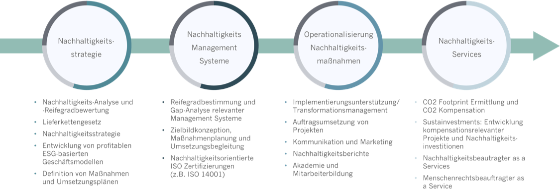 Als „Sustainable Business Engineers Beyond Inception“ unterstützen wir insbesondere unsere Kunden dabei, ihre Geschäftsmodelle ESG-konform und langfristig erfolgreich zu gestalten und treten täglich den Beweis an, dass Nachhaltigkeit in der Wirtschaft und nachhaltiges Wirtschaften Hand in Hand gehen.